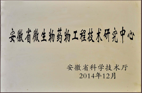 2014年12月公司与安徽大学、安徽工程大学联合组建的《安徽省微生物药物工程技术研究中心》通过省科技厅验收授牌。